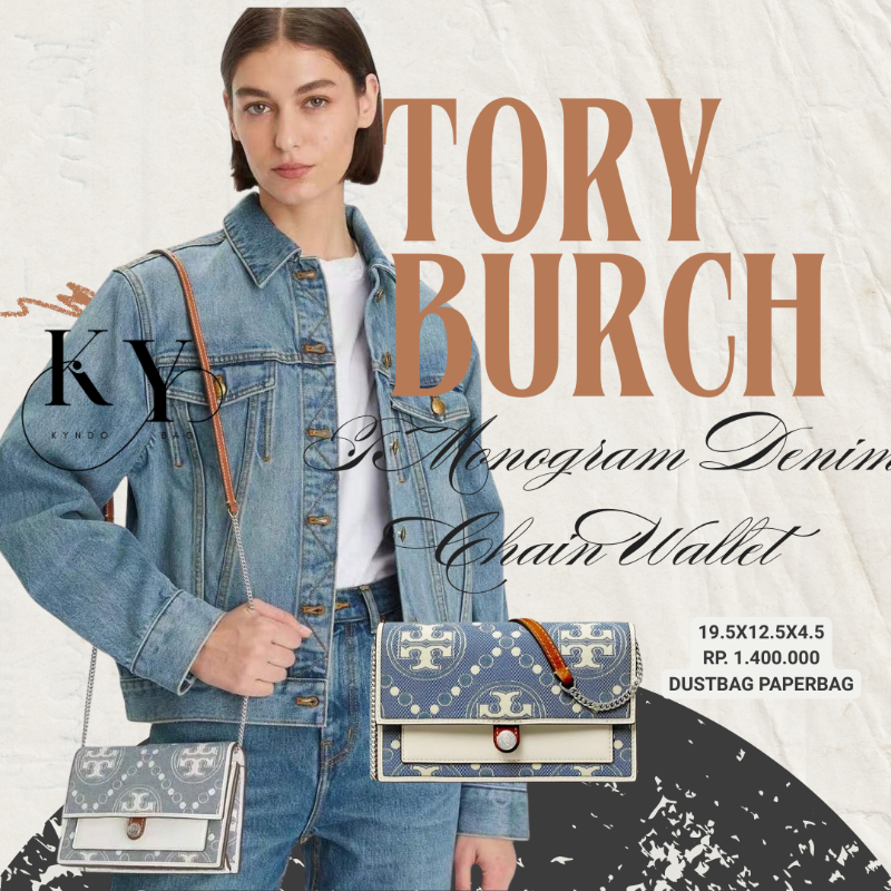 Tory Burch T Monogram Denim Chain Wallet